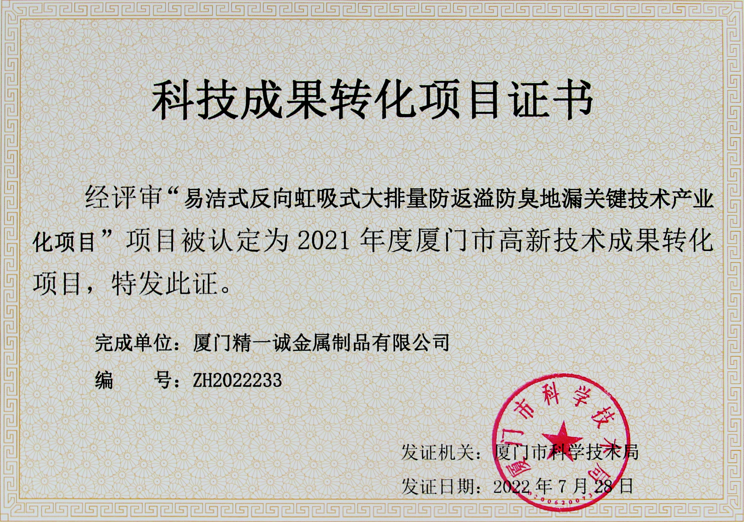廈門市高新技術成果轉(zhuǎn)化項目